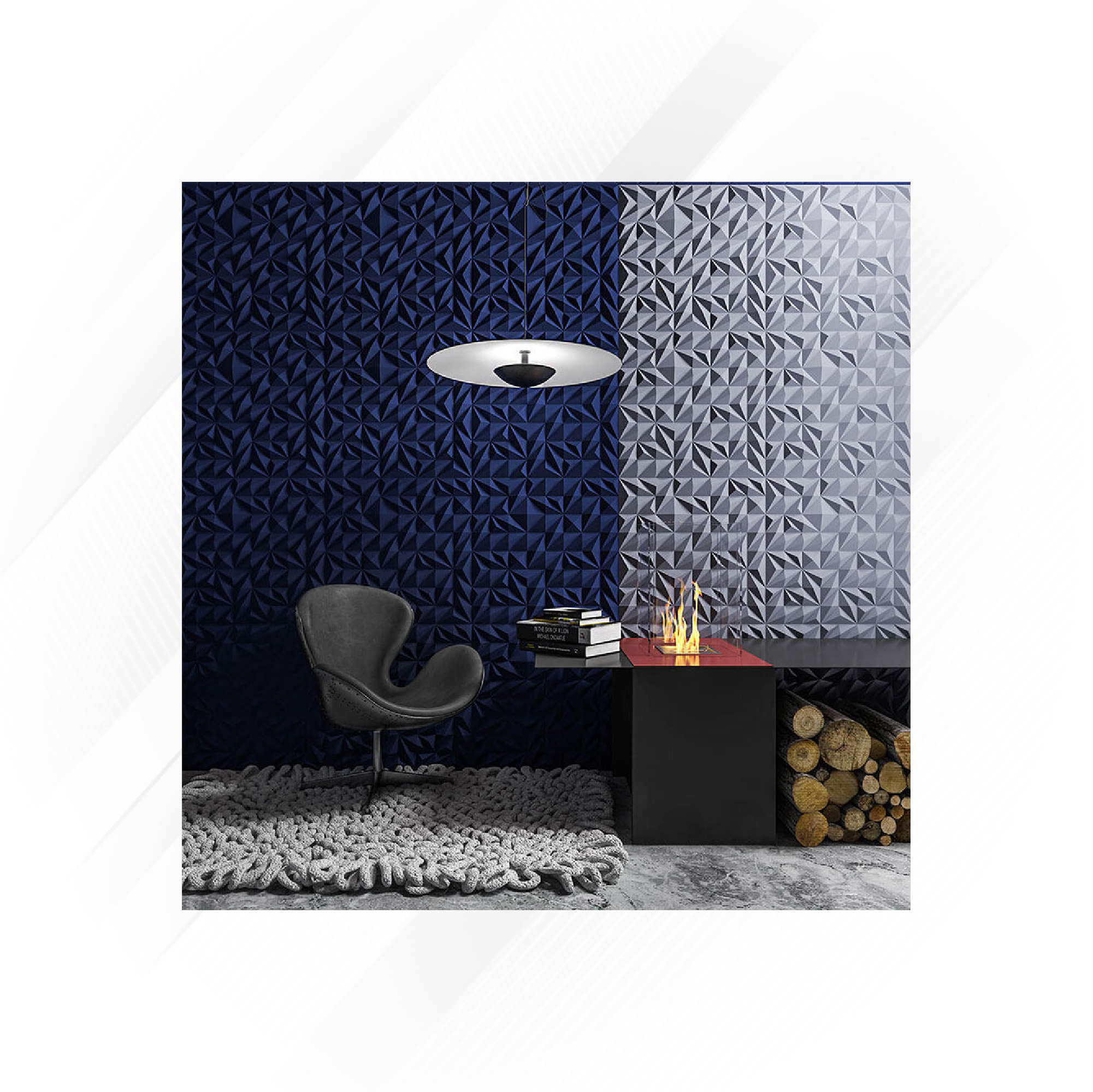 - Sculpted 3D texture adds depth and visual interest to interiors