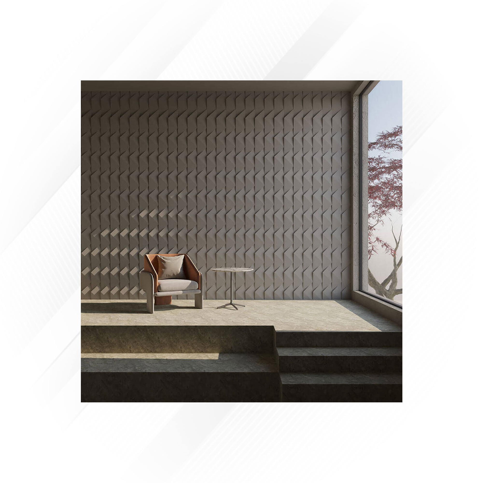 - Sculpted 3D texture adds depth and visual interest to interiors